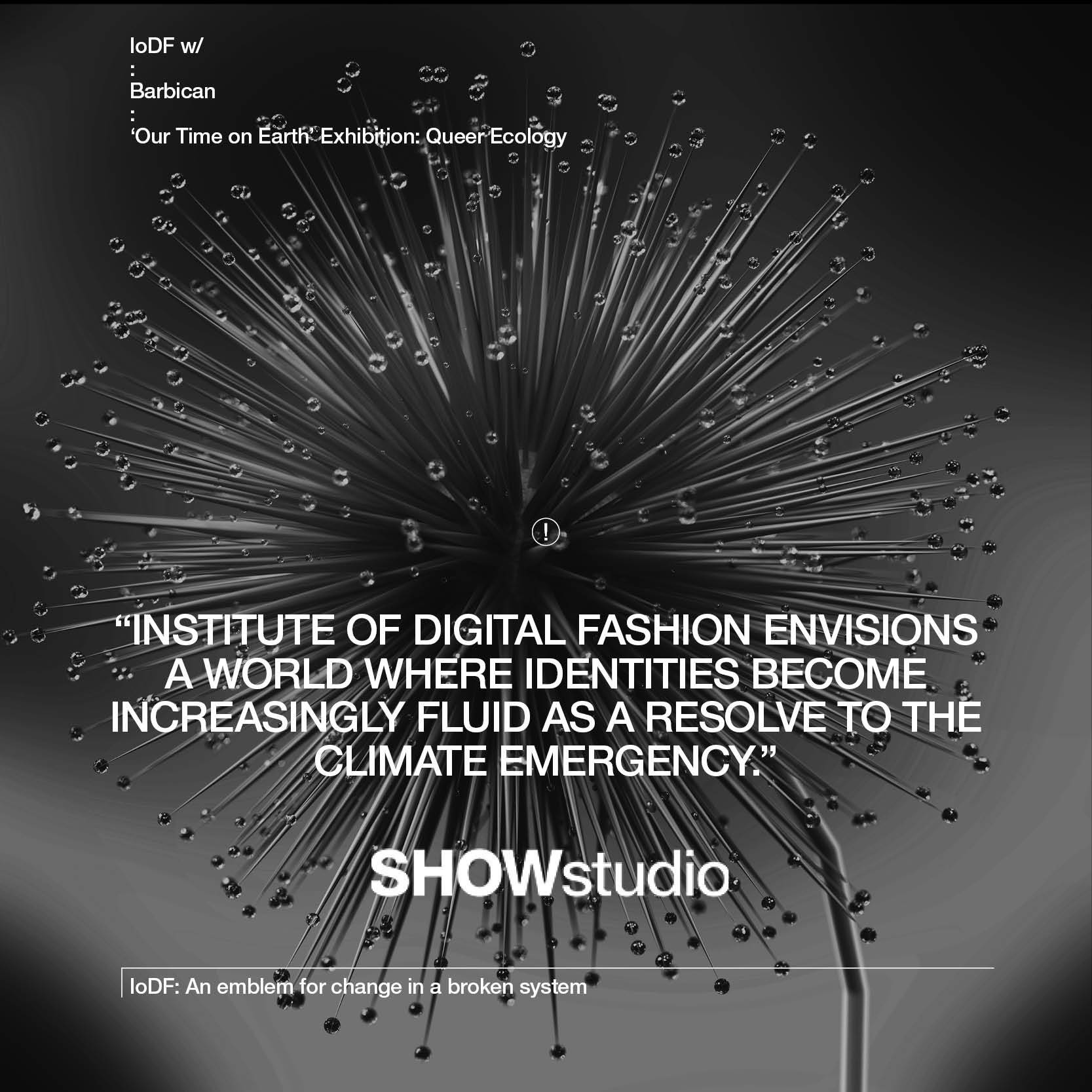 Exhibiting at the Barbican’s ‘Our Time on Earth’, Institute of Digital Fashion produced immersive artwork ‘Queer Ecology’, a multimedia 3D and motion capture artwork in collaboration with Columbian ecologist Brigette Baptiste. ‘Queer Ecology’ delves into what identity, queerness and our natural world have in common. The exhibition took place within the Barbican’s exhibition space ‘The Curve’.